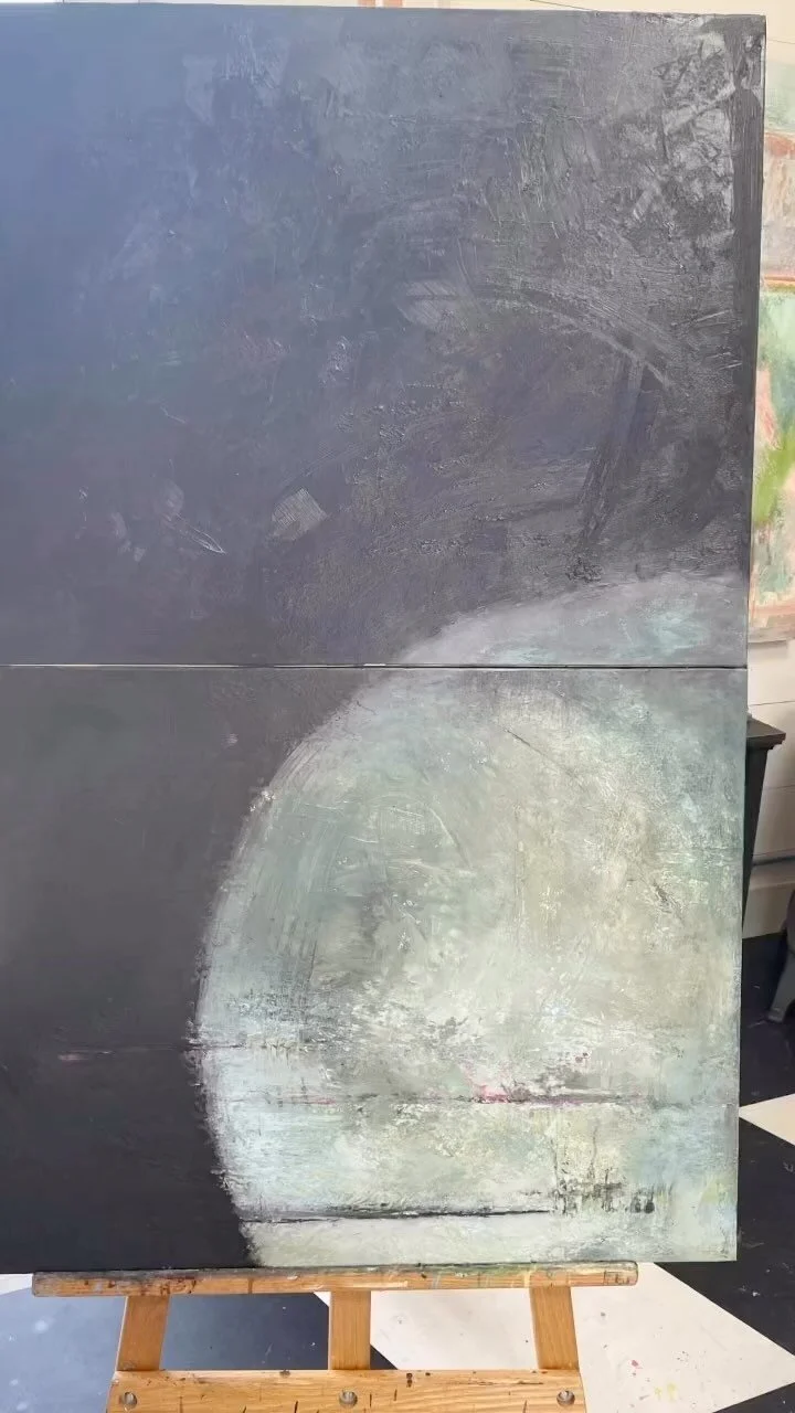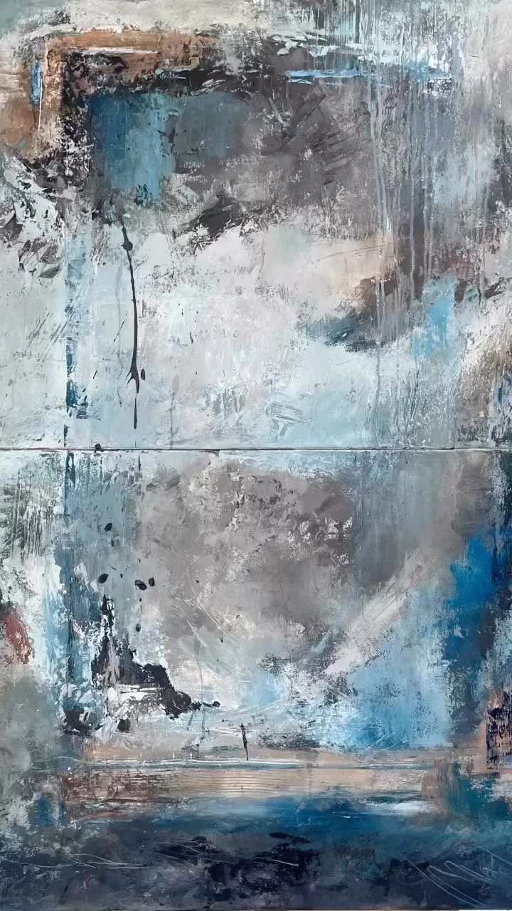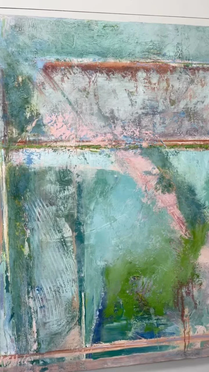 It's where you'll find colorful images rearranged in highly gestural compositions. These eco-friendly oil-on-canvas creations often exhibit the illusion of horizon lines; a matrix with painted layers of reordered landscape and architecture at their core.